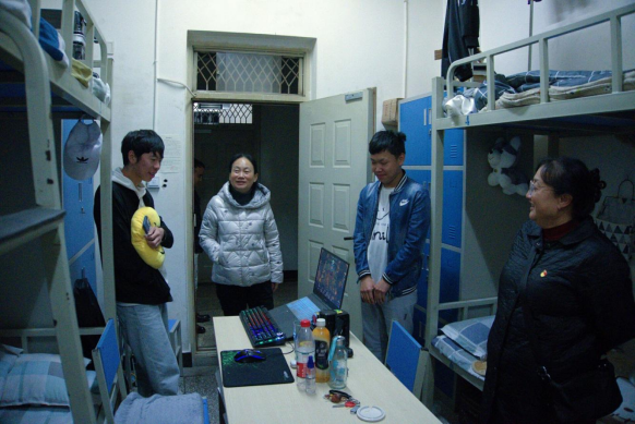 为了解学生学习生活情况,关心学生日常生活问题。11月10日晚19点,校长陈颖、学生处处长李广涛、Beat365唯一官方网站党总支书记王春莲及辅导员朱波、毛颖共同前往五栋Beat365唯一官方网站21级男生宿舍进行走访,并对同学们表示慰问和关心。