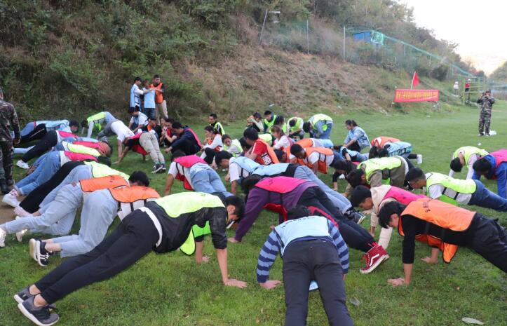 拓展训练由专业教官带领进行。经过报数环节,所有成员被分为四个小队,并进行了编队名、选队歌、定口号和绘队旗等过程,将队员们迅速整合成一个整体。然后各队依次进行团队风采展示,使队员间建立了合作意识和团队意识。紧接着开展了“孤岛求生”、“信任背摔”、“众人传球”三个项目,训练了队友之间相互沟通、相互配合和彼此信任的意识。随后开展了挑战了“动力圈”活动。在教练的引导和鼓励下,大家心往一处想,劲往一处使,“不抛弃、不放弃”,最终挑战了888次旋转成功。展现了团队的责任心、凝聚力和贵在坚持的精神。