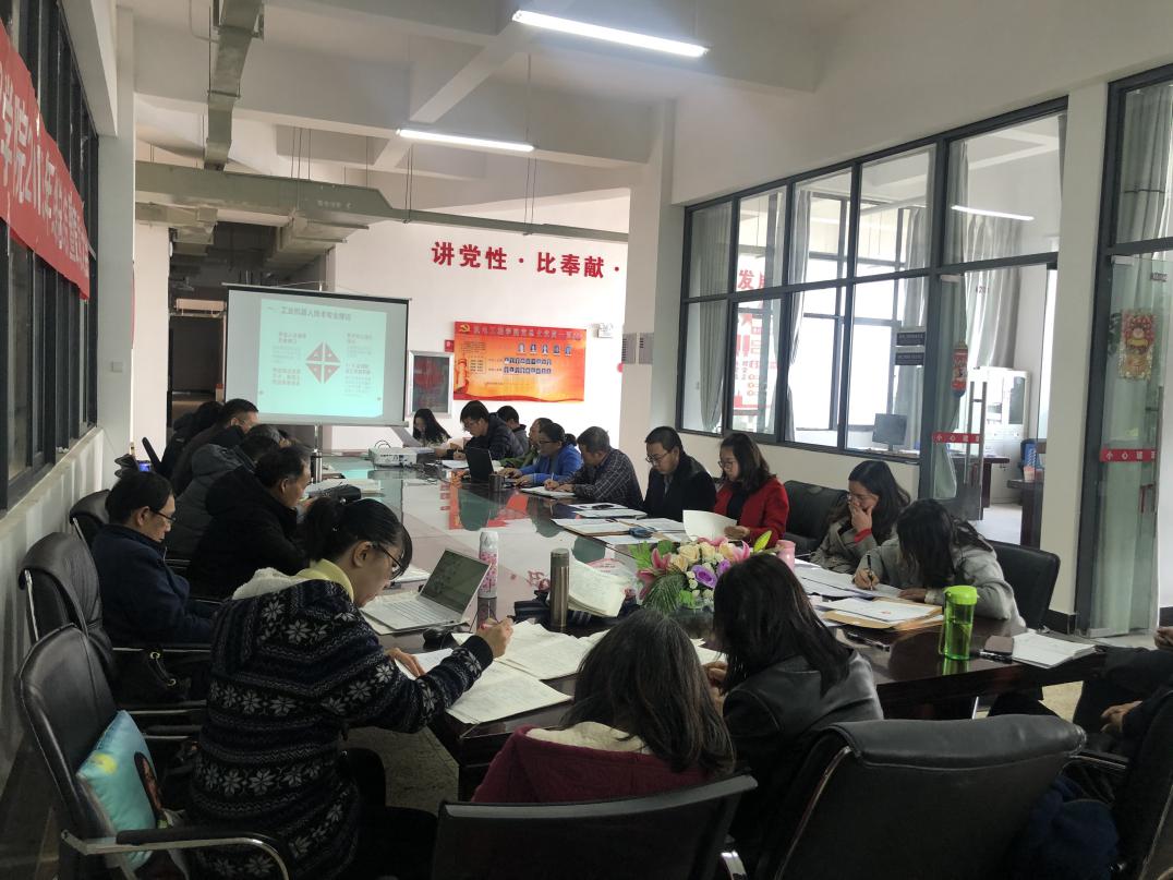 会议第二项,党总支副书记张颖老师宣读表彰2019年度学院优秀教师、优秀教育工作者的决定。会议第三项,各教研室做工作总结及困难研讨,由机电教研室邹艳红老师、电气教研室陈伟老师、安管教研室冯溪阳老师、智控教研室曹瑜老师、数控教研室刘艳伟老师、汽车教研室文富强老师对2019年教研室工作中的亮点及存在问题和下一步工作安排做详细汇报。