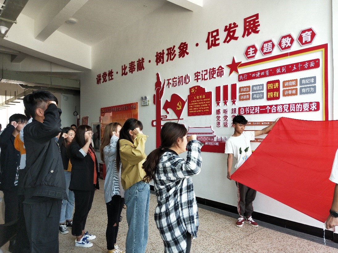 在第一党支部书记唐瑜谦的带领下,全体党员进行了入党宣誓。最后,各支部党员老师为新进党员同志佩戴党员徽章。至此,大会圆满结束。
