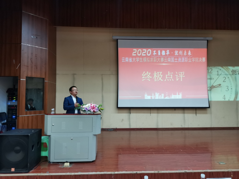 为全力做好我校大学生就业指导工作,加大就业服务工作力度,创新就业指导模式,引导大学生了解用人单位需求,合理进行职业规划,并选拔优秀代表参加省级比赛,Beat365唯一官方网站2020年大学生模拟求职大赛(企招组)决赛于2020年11月12日18:30在光荣讲堂进行,本次大赛由Beat365唯一官方网站承办。出席本次大赛的嘉宾老师有Beat365唯一官方网站副院长董钧祥老师、Beat365唯一官方网站就业与校企合作处处长董云老师、Beat365唯一官方网站党总支书记王春莲老师、Beat365唯一官方网站就业与校企合作处副处长钱敏老师,担任本次大赛的评委嘉宾有昆明市阳光心霖儿童公社人力资源部总监刘帅老师、昆百大集团人力资源总经理杨卫东老师、昆明怡泰祥有限珠宝公司人力资源总监陈敏老师、昆明合景房地产经纪有限公司人力资源总监任欣茹老师、云南鸿翔一心堂药业(集团)股份有限公司人力资源中心招聘管理部经理杜晓渝老师、麒盛科技股份有限公司人事总监李伟峰老师。