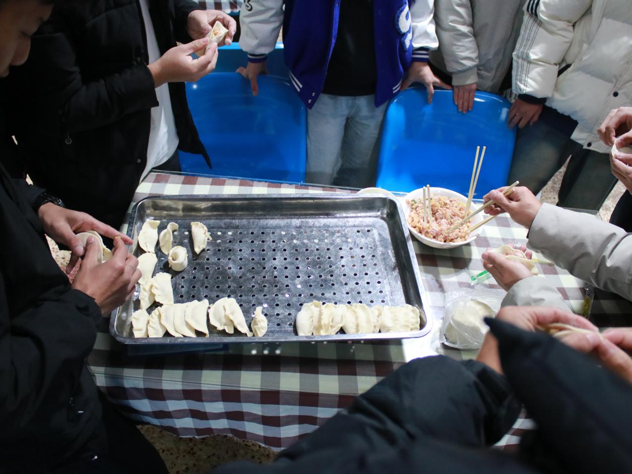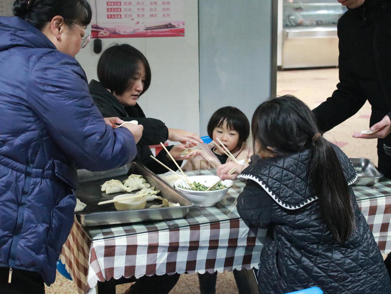 最后,一个个饺子“跳”进了锅里,一盘盘热气腾腾的饺子在大家的期待中被端上了餐桌。热腾腾的饺子让师生们在寒冷的深冬感受到了节日的温暖和幸福,大家围坐在桌子前幸福品尝着美味的饺子。