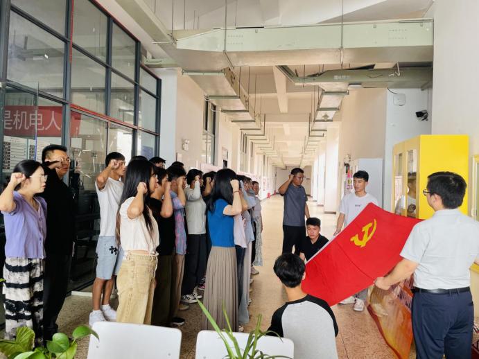 最后,由支部书记带领全体党员面对党旗,庄重宣誓。学生党支部副书记吴兴虎组织毕业生党员开展了离校教育,宣读了致毕业生党员的一封信,向同学们致以诚挚的祝福,并希望全体学生党员要强化党性锻炼,永葆政治本色;加强党纪学习教育,树立规矩意识;厚植家国情怀,担当时代重任;秉持“明德尚能、学以致用”的校训,以“崇实笃行、质朴宽厚”的国土精神为指引,积极投身到服务人民、报效国家的伟大实践中去。
