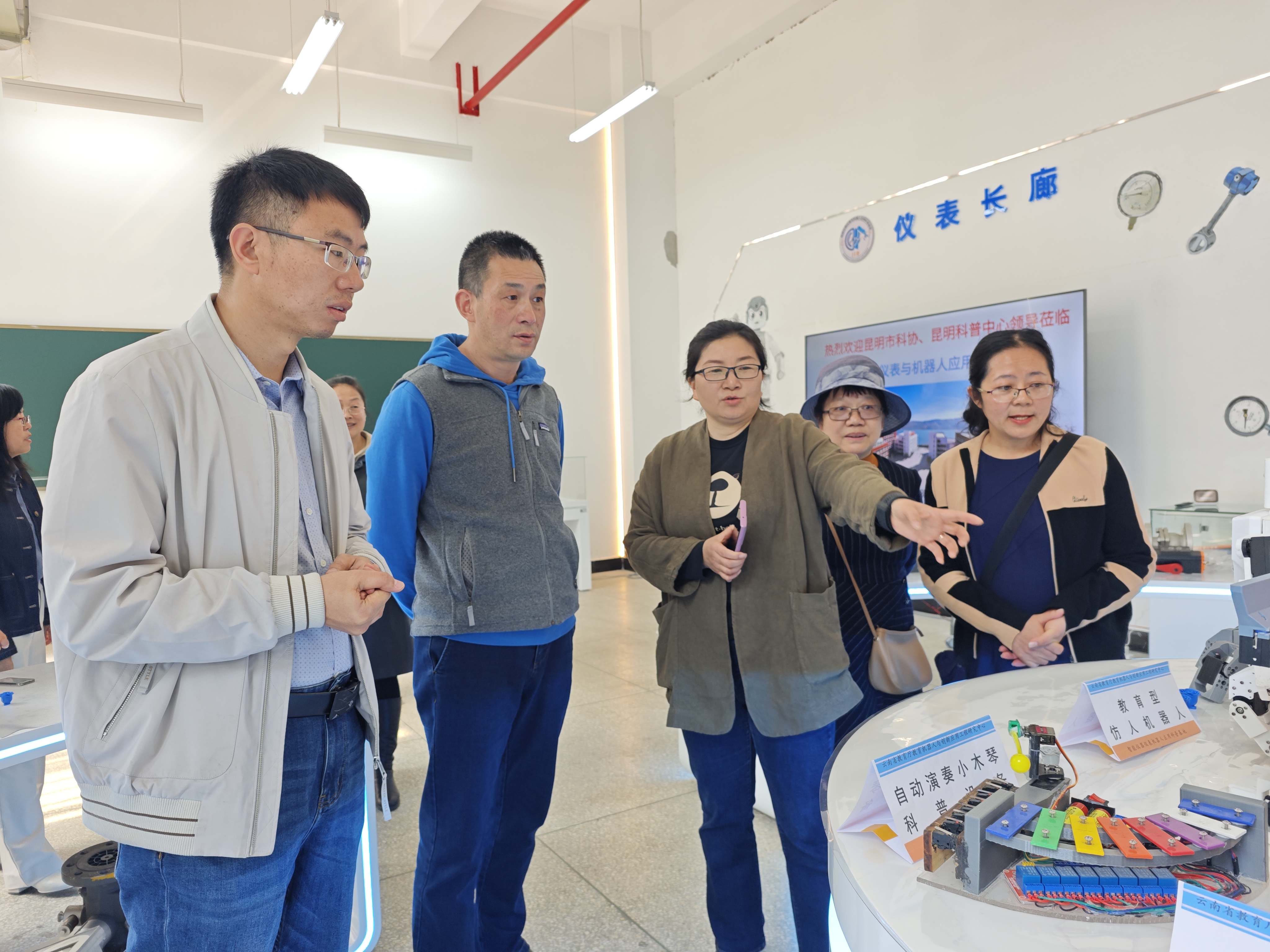 3月28日上午,昆明市科学技术协会与昆明科普中心一行到我校智能仪器仪表与机器人应用科普基地进行参观交流。学校副校长张云霞,科研管理与社会服务中心主任李艳丽以及Beat365唯一官方网站教师代表全程陪同。