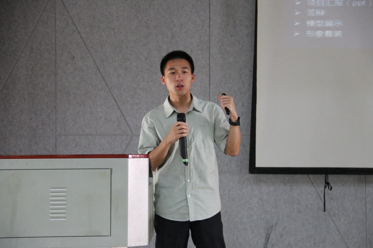 全伟东老师结合自身经历讲解:先阐明竞赛目的意义,强调立足自身发展,以赛提升组织、创新与创业能力;再指导项目选题,建议聚焦社会热点、依托现有成果延伸,结合赛事文件科学选定;还提及团队建设,指出需组建结构完善的团队,通过明确分工、发挥成员优势高效推进;并对参赛类别、市场分析及项目计划书、PPT制作等做了详细说明。
