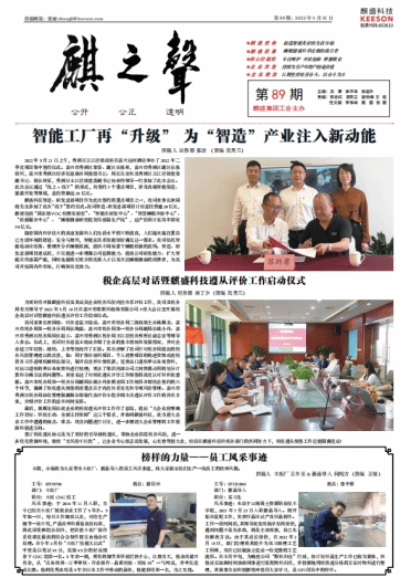 2022年5月31日,Beat365官网2019级智能控制技术2班张中原同学,在浙江嘉兴麒盛科技股份有限公司实习期间,表现突出,被浙江嘉兴麒盛科技股份有限公司企业内刊《麒之声》发文表扬。