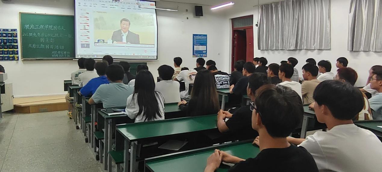 本次团日活动中,各支部结合实际情况,以ppt讲解、视频学习、学习感悟分享等形式带领团支部成员学习了团十九大中习近平总书记的重要讲话精神、国防教育相关知识、“勿忘国耻”等内容。部分支部还在ppt讲解、视频学习的基础上创新学习方式,引导支部同学要深刻领悟习近平总书记重要讲话精神”,提高国防意识和总体国家安全观,铭记历史、勿忘国耻,奋发图强,为祖国繁荣富强奉献青春力量。其中,2022级电气自动化技术2班在开展“勿忘国耻 警钟长鸣”这个内容时,通过集体默哀来缅怀先烈,回顾革命先烈义无反顾、冲锋在前、抛头颅洒热血的场景。2022级智控4班还以热议讨论的方式集中开展了感悟分享活动。班级同学钱鹏在热议活动中说“本次团日活动内容丰富,紧跟最新理论和重要思想,提高我们思想觉悟的同时,还在不断激励着我们要将本次学习内容内化为行动力量,担负起自己肩上的责任,努力做有信仰、有担当,不服输、不怕败,有锐气、有胆略的新时代青年。”