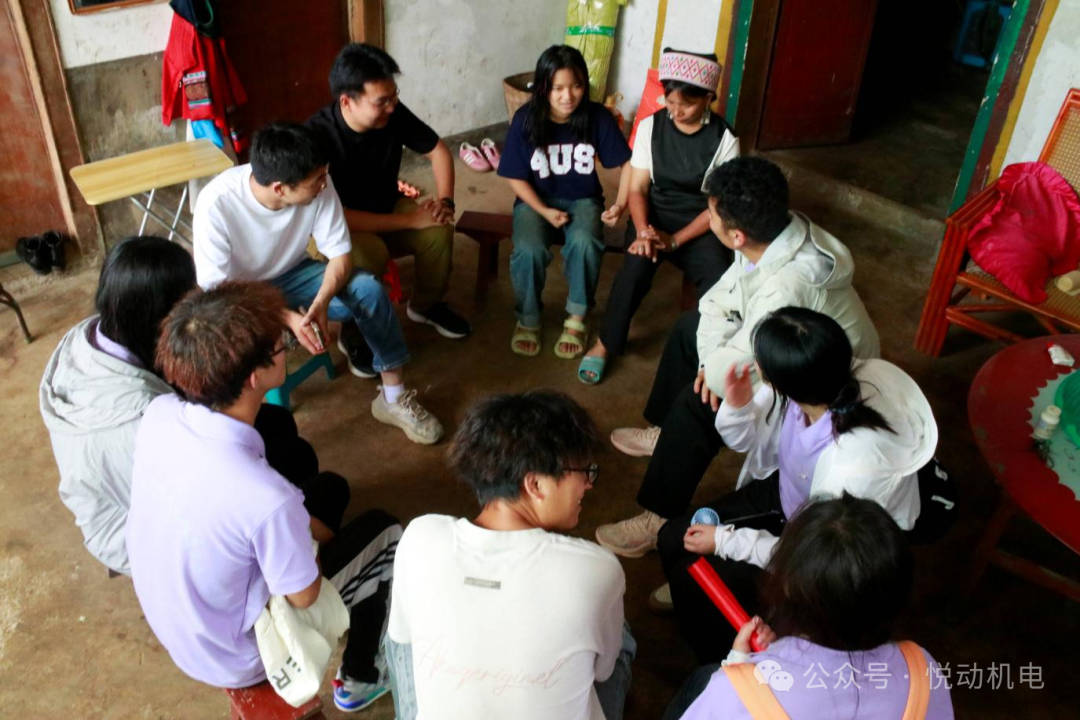 绿春县戈奎乡蒿苔社区驻村工作队员杨勇、戈奎村委会驻村工作队员马晓和Beat365官网三下乡团队成员在入户走访服务后进行座谈。