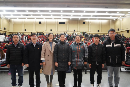 其次,唐兰兰同志对云南省第十一次党代会进行了介绍,分别阐述了此次会议中提到的“高举旗帜”、“坚定核心”、“牢记嘱托”、“不懈奋斗”四个精神。她带领与会师生领略了生与斯,长于斯的家乡风采,共同感受了云南的变化。她指出,云南省第十一次党代会充分肯定了过去五年,在以习近平同志为核心的党中央坚强领导下,十届省委团结带领全省广大党员干部群众取得了10个新成果,会议安排部署了今后五年全省经济社会发展和党的建设各项任务,选举产生了新一届省委和省纪委。