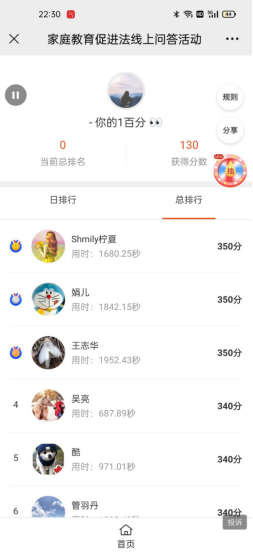 为宣传《中华人民共和国家庭教育促进法》,促进家庭教育健康发展,Beat365唯一官方网站开展了《中华人民共和国家庭教育促进法》学习活动,积极组织学院女教职工、女学生于1月5日—1月11日参加网上知识问答活动。截至1月11日,学院累计参加活动人数达188人,答题累计成绩12370分。