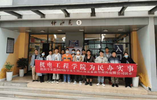4月25日,在学院与企业的精心组织下,云南宏泰新型材料有限公司顺利到学院招聘到17名应届毕业生,涉及电气自动化技术、数控技术、智能控制技术、工业机器人四个专业。应企业要求,此次招聘的17名同学需于5月1日到企业报到。为降低疫情感染的风险,给学生送去关心关爱,学院第一时间联系相关部门,于5月1日上午9点,统筹安排专车将17名毕业生送往云南宏泰新型材料有限公司。