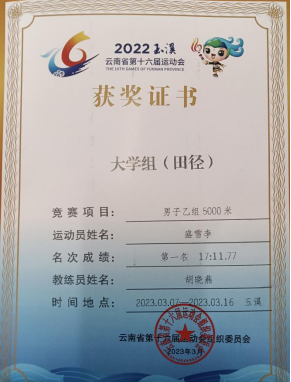 3月10日,Beat365官网2020级工业机器人专业学生盛雪李以17分11秒的优异成绩获得云南省第十六届运动会大学生男子乙组5000米冠军。