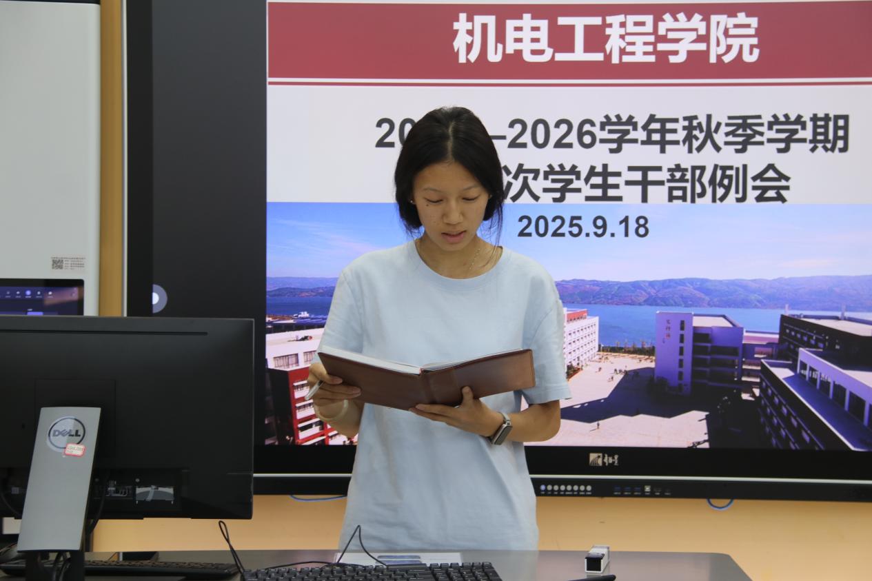 学生会主席严琪回顾学院此前举办的各类活动,详细介绍后续活动安排。