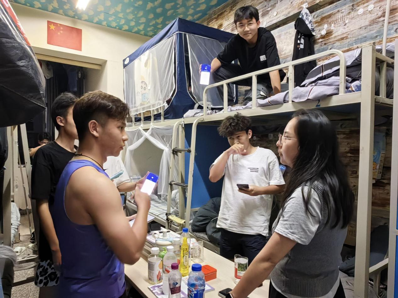 会后,张颖书记走访学生宿舍检查国家反诈中心APP安装情况。