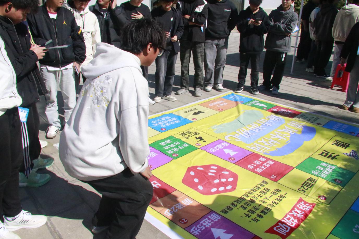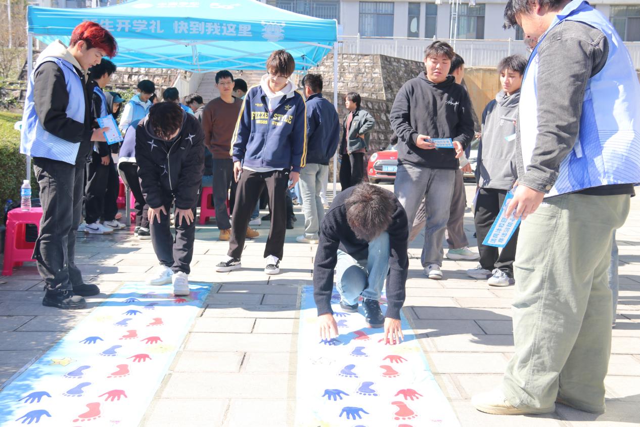 “辨清浊,行正道”:参与者依照地面手足印记谨慎前行,寓意在人生道路上须明辨是非、站稳立场、正直前行。