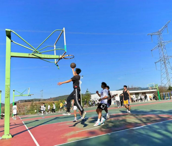 随着裁判的哨音响起,比赛正式开始。双方球员秉承“友谊第一,比赛第二”的宗旨,在球场上默契配合、奋勇拼搏,运球、投球、断球......,动作丝滑顺畅,实力不相上下,比分互相赶超。双方球员在球场上尽情挥洒汗水,用青春和热血向对手致敬。场下拉拉队气势不输场上,大家大声呐喊助威,兴奋地欢呼着、跳跃着。裁判员严肃认真、公正执裁,不放过“蛛丝马迹”,保障了篮球赛的公正性和延续性。