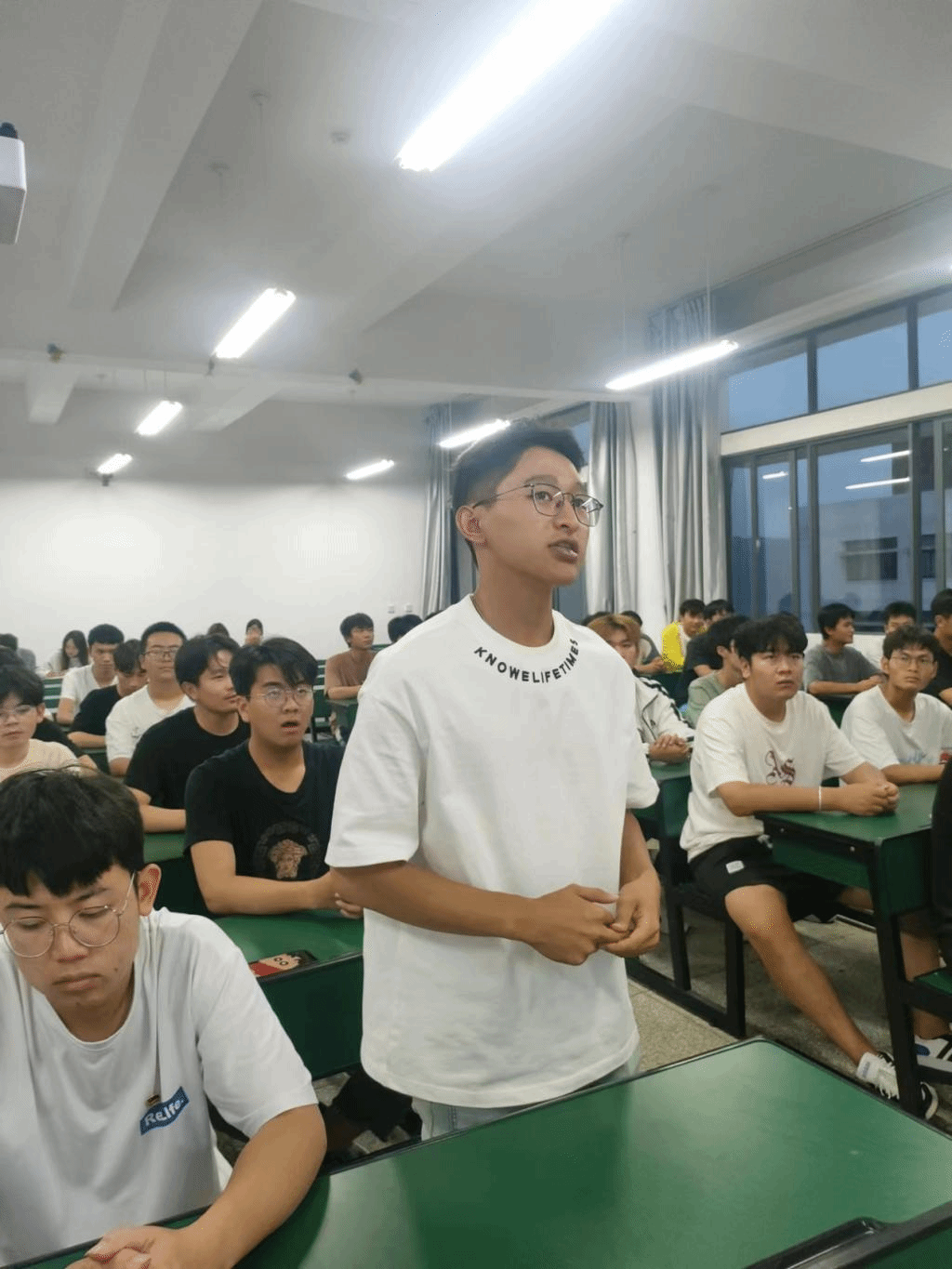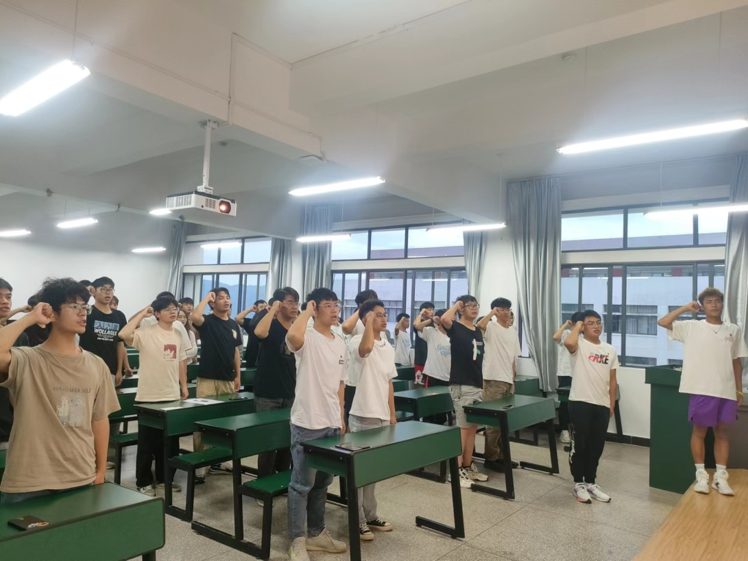 活动开始,团支部副书记谢子城带领全班同学重温入团誓词、齐唱团歌。同学们声音洪亮,气势慷慨激昂,眼里充满希望,脸上洋溢青春的执着和坚定。