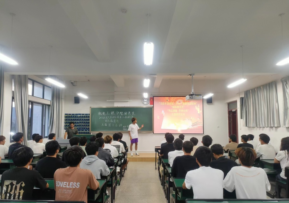 为深入学习贯彻习近平总书记重要讲话精神,全面落实团十九大部署,让同学们回顾历史缅怀先烈,加强国防意识。9月25日,2022级电气自动化技术2班在崇实楼501开展了“习近平总书记‘6 ·26’重要讲话精神”“国防教育月”“勿忘国耻 警钟长鸣 ”主题团日活动。本次团日活动由团支部副书记谢子城主持,全班同学共同参与。