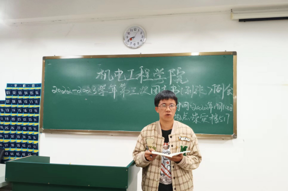 最后,团总支副书记李玉花对本次团日活动部署会进行总结发言,她要求各班团支书要及时做好本次团日活动的策划和总结,既要分工明确,又要团结班委和同学,不断创新活动形式,扩大团日活动的影响力。她希望团支书个人要积极发挥榜样示范作用,要积极上进、勤奋刻苦,勤学习、多思考、多提问,不断夯实专业基础;要自信自强、踔厉奋发,积极学习马克思主义最新理论成果和二十大报告,深入领会、全面贯彻报告精神实质,主动担当时代重任。