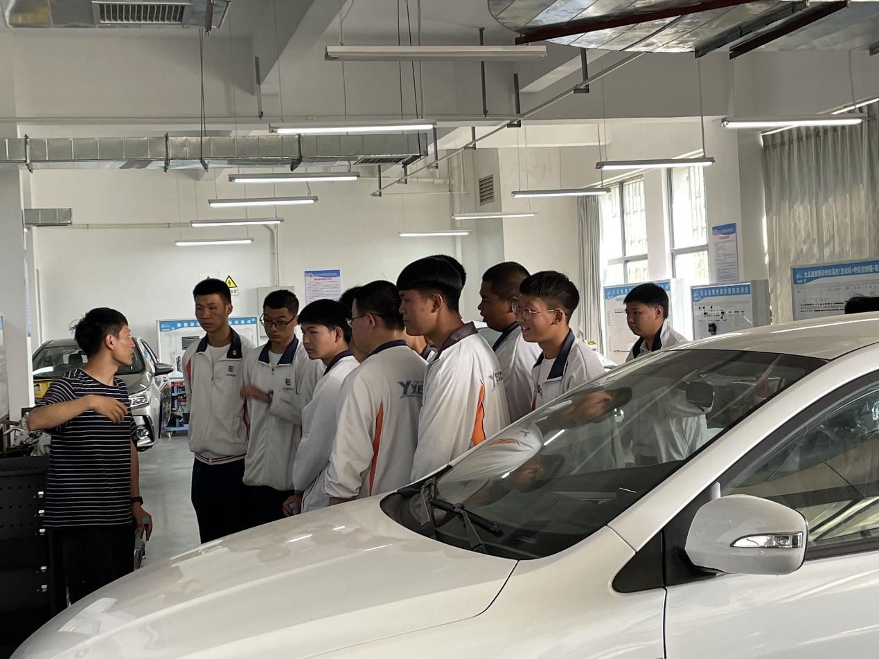 接着,学院实训室管理员王强卫带领全体师生依次参观了安全检测与监测实训室、单片机综合实训室、电工综合实训室、PLC实训室、汽车电子实训室等,向同学们介绍了感烟感温探测器、火灾报警系统、汽车发动机和变速器等实训设备。