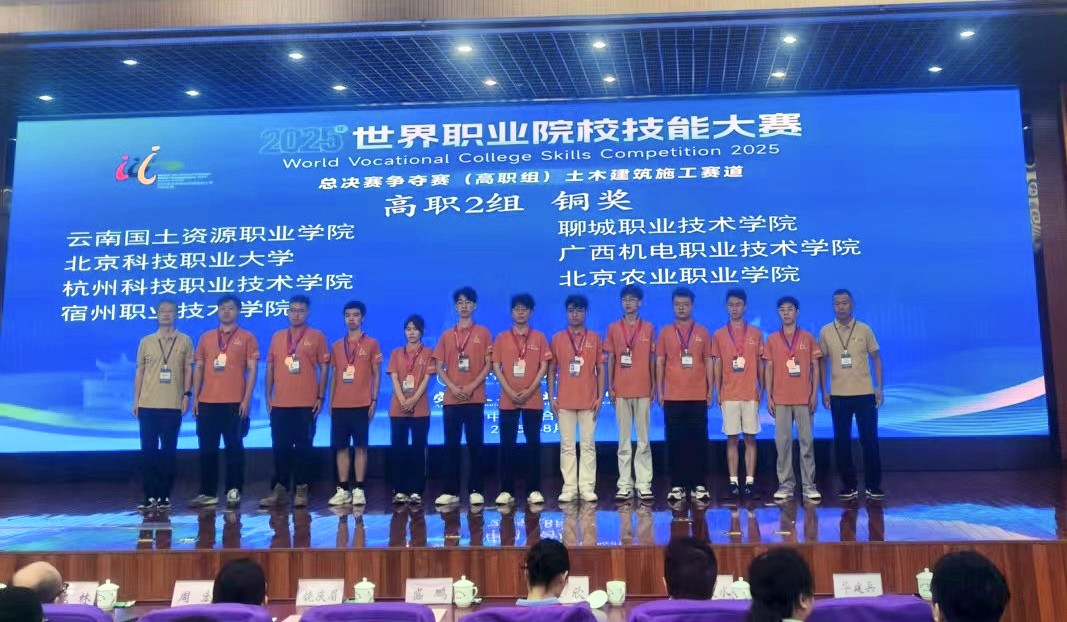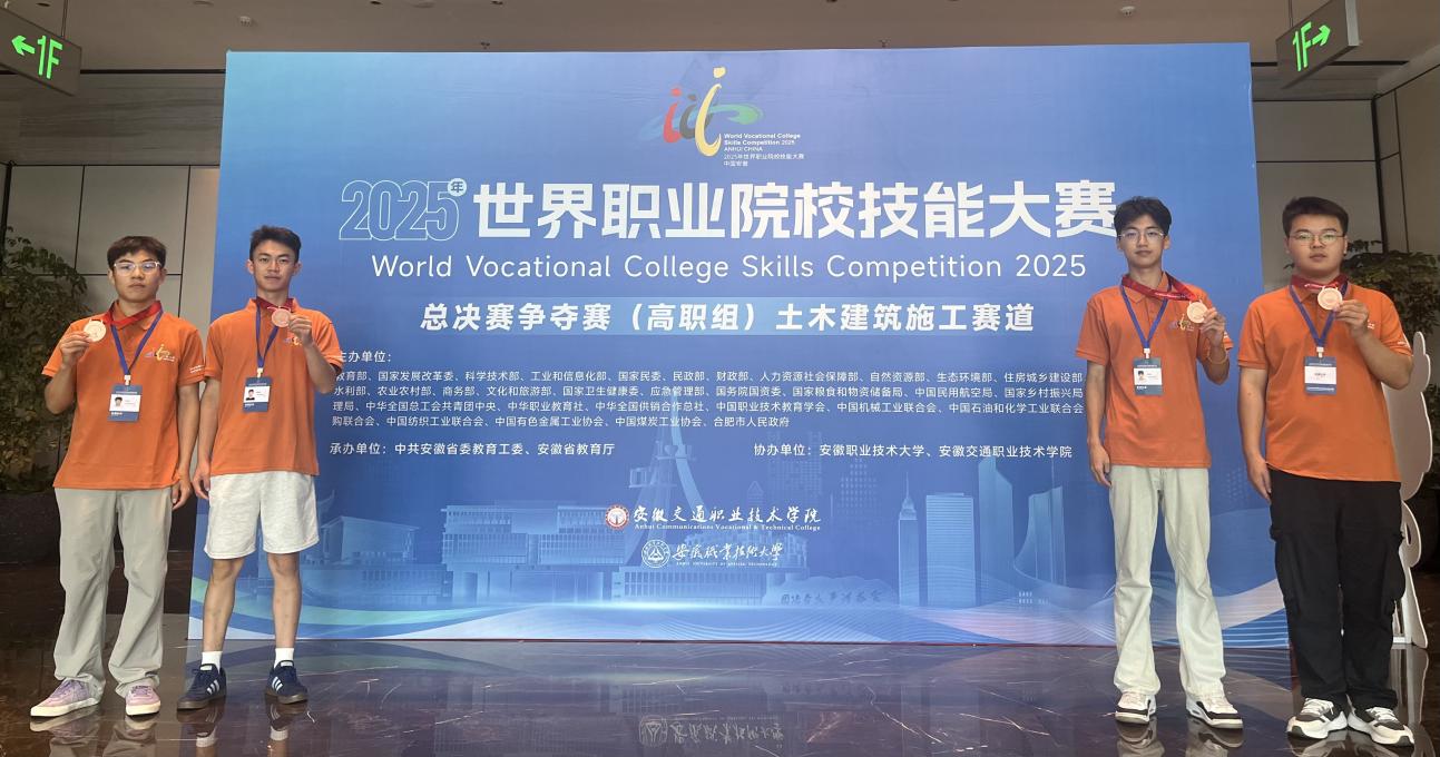 8月27日至30日,由安徽职业技术大学与安徽交通职业学院联合承办的2025年世界职业院校技能大赛总决赛(高职组)土木建筑施工赛道比赛圆满落幕。由Beat365官网安全消防专业群选派的学生团队(李钧杰、孔令富、殷良霄、邱洪键)在冯溪阳、刘芳芳老师的指导下,首次参赛勇夺大赛铜奖,实现Beat365官网在该项国际赛事土木建筑施工赛道中的历史性突破!
