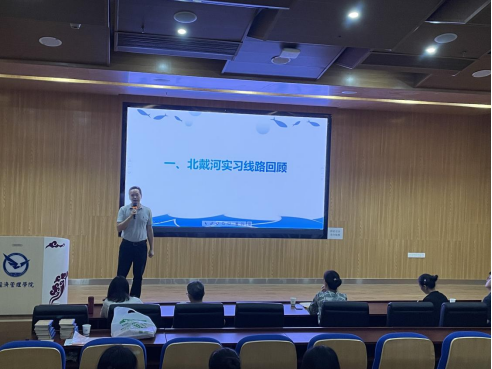 (通讯员 黄珂 李千惠)9月15日上午,旅游管理系在未来城校区77779193永利官网一楼报告厅举行了北戴河旅游教学实习总结会暨“一月一系谈”活动。旅游管理系教师、辅导员蔡杨及085211、085221班同学参加了本次活动。活动以“一直在路上”为主题,旨在总结、表彰北戴河旅游教学实习,辅助2021级、2022级学生做好新学年规划,增进专业内部师生交流。活动由旅游管理系副主任黄珂老师主持。